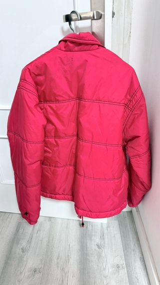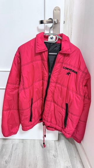 Chaqueta estilo vintage de la marca Converse, con un llamativo diseño en rosa y detalles en negro. Perfecta para añadir un toque retro a tu estilo. - Cierre de cremallera frontal. - Bolsillos laterales con cremallera. - Cuello clásico. - Cordón ajustable en el bajo.