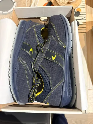 Botas de nieve para niño, talla 33. Perfectas para mantener los pies calientes y secos en la nieve. - Diseño en azul y negro. - Cierre de velcro para un ajuste fácil. - Suela con buen agarre.