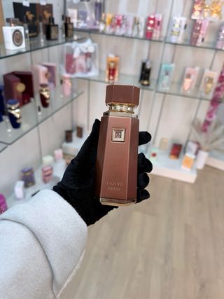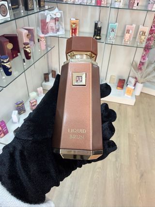 Este perfume Liquid Brun tiene un diseño elegante y un aroma cautivador. - Liquid Brun es una fragancia cálida y elegante que mezcla especias suaves y cítricos con una envolvente dulzura cremosa de vainilla y praliné sobre una base amaderada y almizclada, resultando en un aroma sofisticado, moderno y con carácter.  Somos una tienda de perfumes situada en Torredembarra en calle capella 10, para más información llámenos al +34 698 98 73 43