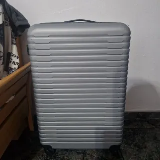 Maleta de viaje con un diseño moderno y resistente. - Material rígido. - Ruedas para facilitar el transporte. - Asa extensible. - Cierre con código - 1 solo uso, en dicembre 2025 La vendo porque tengo 2 y ya no utilizaré 1 Su precio nueva es de 45€ **Medidas aprox 20cm grosor, 60 cm alto, 40 cm ancho **Capacidad 23kg