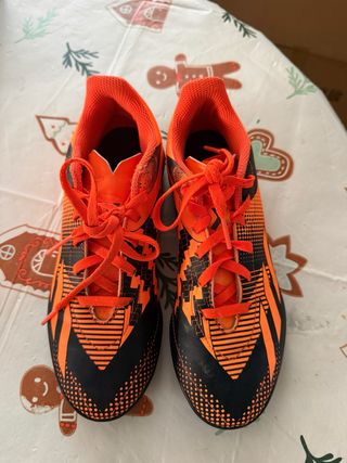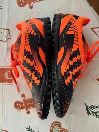 Botas de fútbol con un diseño llamativo y moderno. - Combinación de colores vibrantes. - Cierre con cordones para un ajuste seguro. - Ideales para césped artificial.