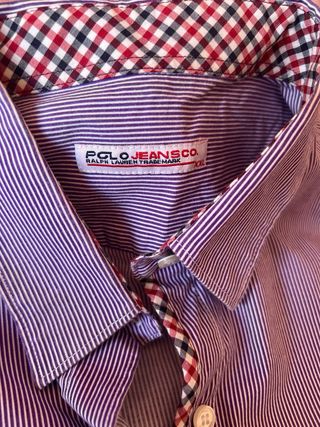 Camisa de manga larga con un diseño de rayas finas en tono morado. Presenta un pequeño logo bordado en el pecho. - Cuello camisero. - Cierre de botones. - Puños abotonados.