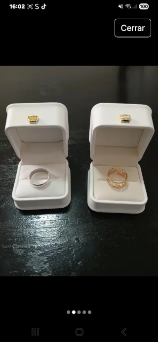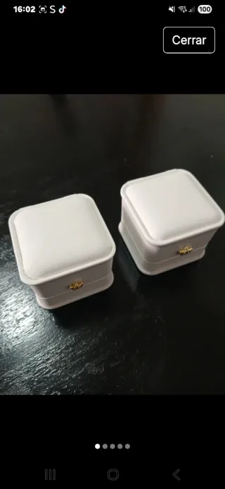 Set de dos cajas para anillos de compromiso. Ideales para presentar joyas o alianzas. - Acabado exterior en blanco. - Detalle dorado en el cierre.