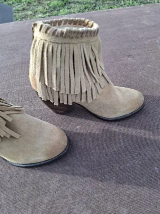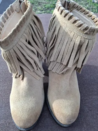 Botas de ante con flecos. Muy poco uso - Material: Ante - Color: Beige - Talla: 39 El importe recaudado será íntegro para la Asociación Torrecat para ayudarnos ayudar a los gatos por las calles de Torredembarra. ¡¡ Entra en nuestro perfil para ver otros objetos en oferta !!