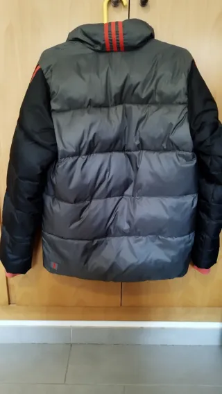 Abrigo acolchado de Adidas con forro interior en contraste. - Diseño con tres rayas en las mangas. - Cierre de cremallera frontal. - Cuello alto.