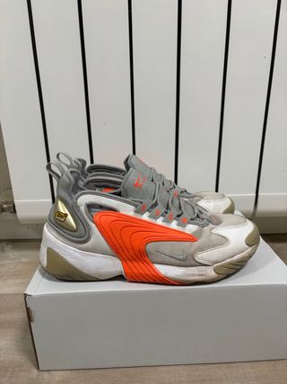 Zapatillas deportivas Nike Zoom 2K con un diseño moderno y llamativo. - Combinación de colores naranja y blanco. - Detalle Zm en el lateral.