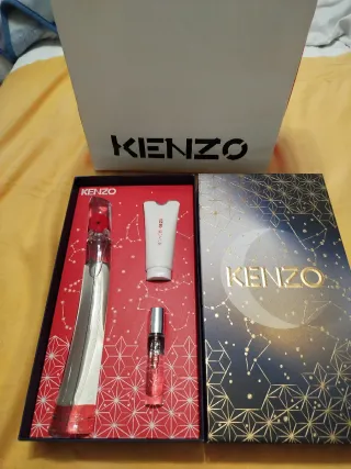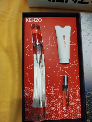 Set de regalo de perfume Kenzo. - Incluye un frasco de perfume. - Incluye un tubo de loción. - Incluye un atomizador de viaje.