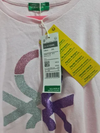 Camiseta de manga larga de United Colors of Benetton con un diseño llamativo. - Estampado frontal con purpurina. - Color base rosa.