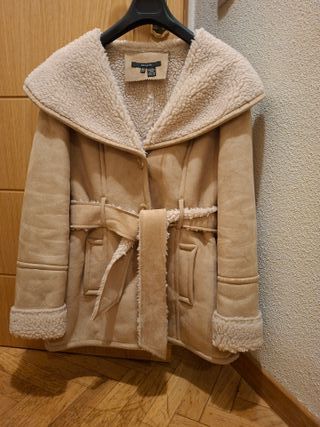 Elegante chaquetón de Zara en color beige, perfecto para abrigarse con estilo.Todo el interior forrado Muy poco uso. Ningun desperfecto - Diseño con cinturón para ajustar la cintura. - Forro interior de borreguito para mayor calidez. - Cuello amplio y solapas. - Puños y bajo con detalle de borreguito.