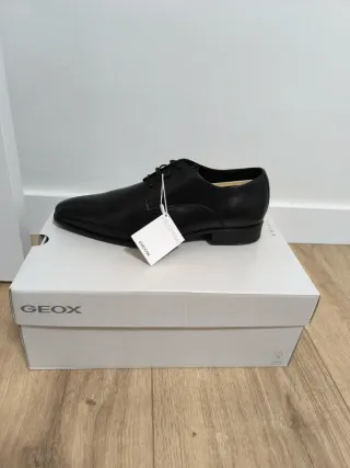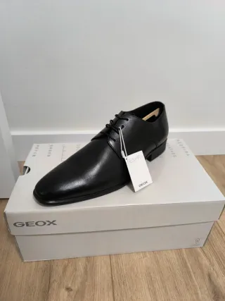 Zapatos de vestir Geox negros talla 42 nuevos Modelo U HIGH LIFE B - SMO.LEA / black Guia de tallas 42 EUR / 9 USA / 8 UK / 280 mm Zapatos de vestir muy bonitos marca Geox, negros, cómodos, elegantes, ligeros y la cualidad más destacada, transpirables gracias s la tecnología que usa el calzado Geox. Muy buenos materiales y acabados, detalles cuidados. Nuevos con etiquetas y caja original en perfecto estado. Tal como se ve en las fotos