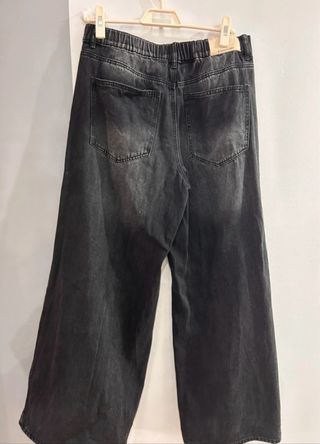 Pantalones vaqueros de corte ancho con un lavado desgastado. - Cintura elástica. - Bolsillos delanteros. - Diseño de pierna ancha.