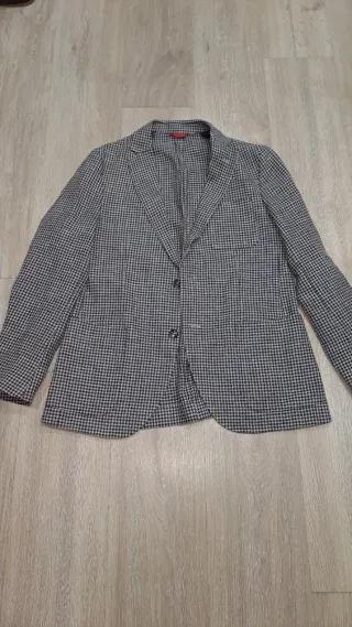 Elegante traje de dos piezas, perfecto para ocasiones formales. - Chaqueta con solapa clásica talla 52 - Pantalón de corte recto talla M - Cierre de botones en la chaqueta. - Puños con botones en las mangas.