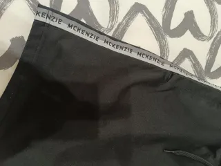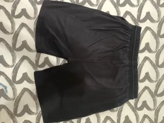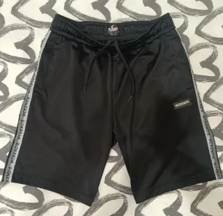 Conjunto deportivo de dos piezas. - Camiseta negra con logo. - Mallas cortas negras con logo.