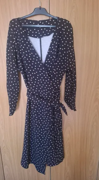 • Estado: Impecable, puesto solo unas horas para una boda. Limpiado en tintorería. • Diseño: Vestido midi con escote cruzado en V, manga larga y detalle de fruncido lateral que estiliza muchísimo la figura. Tejido con brillo metálico (foil) en forma de plumas. • Ocasión: Ideal para bodas de día o tarde, bautizos o eventos especiales. • Referencia de talla: Es una talla 36 (S). El tejido tiene un poco de elasticidad, por lo que se adapta muy bien al cuerpo. Precio original 230€