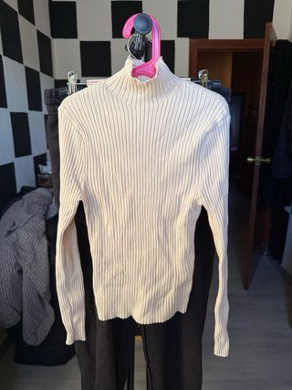 Jersey de punto fino de Zara con cuello alto y manga larga. Un básico versátil para cualquier ocasión. - Tejido acanalado. - Cuello con acabado festoneado.