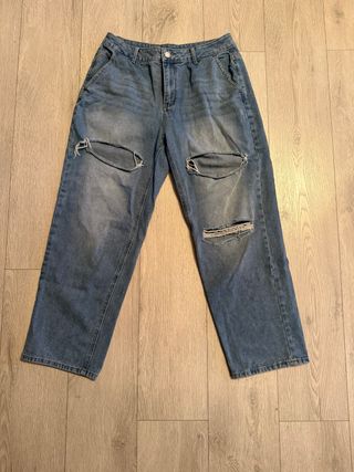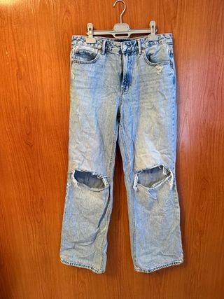 Vaqueros anchos Stradivarius con un diseño moderno y desgastado. - Detalle de rotos en las rodillas. - Lavado claro.