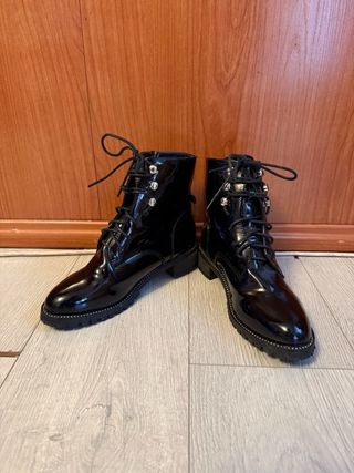 Botas de invierno para niño en talla 38. Son cómodas y resistentes, perfectas para el frío. - Diseño en tonos grises y azules. - Cierre con cordones.