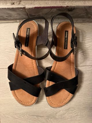 Sandalias de la marca Mustang en talla 39. - Diseño cruzado en la pala. - Tira ajustable al tobillo con hebilla. - Suela con detalle plateado.