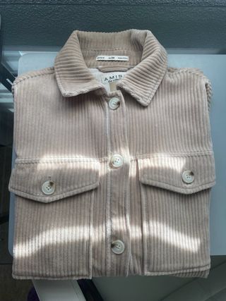 Chaqueta de pana con un diseño moderno y cómodo. - Material de pana suave. - Cierre de botones. - Dos bolsillos en el pecho. - Cuello camisero. Aun que sea talla XS da bastante talla, yo uso una M y me vale.
