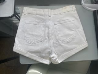 Vaqueros cortos de estilo clásico. - Cintura alta. - Bolsillos delanteros y traseros. - Dobladillo en los bajos.