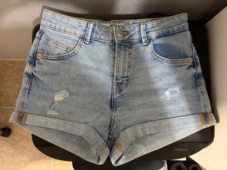 Shorts vaqueros de Pull&Bear con un diseño moderno y desgastado. - Bolsillos delanteros y traseros. - Bajo deshilachado.