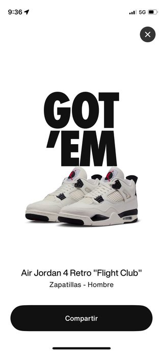 Zapatillas Air Jordan 4 Flight Club en color Sail y Negro. Acceso exclusivo SNKRS me llegan el viernes. - Venta en mano o Envío. - Posibilidad de entrega en zona Loranca ( Fuenlabrada ) - Diseño exclusivo. - Factura de compra SNKRS.