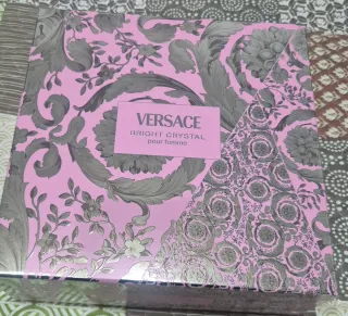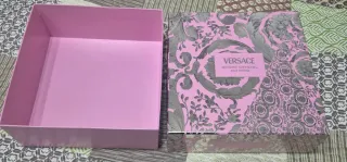 Caja decorativa de la marca Versace. - Diseño floral en tonos rosa y gris. - Acabado brillante.