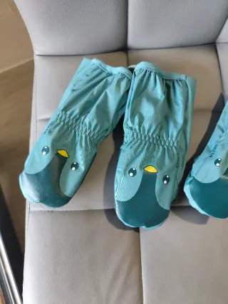 Conjunto de manoplas de nieve para niños con un adorable diseño de pingüino. Utilizadas solo una vez, 5€ cada una. Talla 0-12 y 12-24 - Diseño de pingüino con ojos y pico. - Tejido suave y resistente. - Cierre elástico en la muñeca.