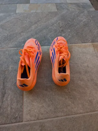 Botas de fútbol Adidas F50 LESGUE nuevas sin ningún uso. - Modelo F50 LESGUE. - Combinación de colores naranja y azul. - Cierre con cordones.