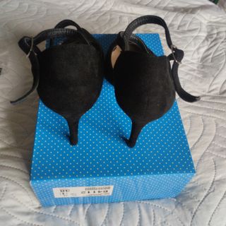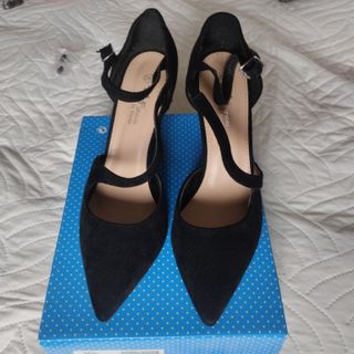 Elegantes zapatos de tacón fino con diseño en punta y acabado en ante. - Material: Ante - Color: Negro - Talla: 40 - Diseño: Punta - Tacón: Fino - Cierre: Correa al tobillo
