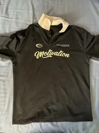 Camiseta de manga corta que sirve tanto para vestir informal como para hacer ejercicio. Tiene el cuello tipo polo en color beige.
