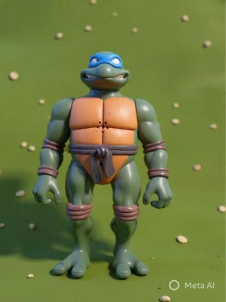 Figura de acción de Leonardo, el líder de las Tortugas Ninja. Detallada y con colores vibrantes. - Diseño inspirado en el personaje clásico. - Pintura en tonos verdes y naranjas.