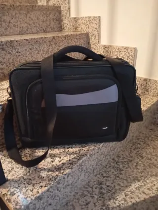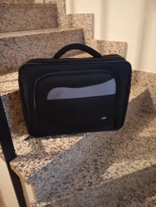 Maletín negro para portátil con un diseño moderno y práctico. - Compartimento principal acolchado. - Bolsillo frontal con cremallera. - Asa de mano reforzada. - Correa de hombro ajustable.