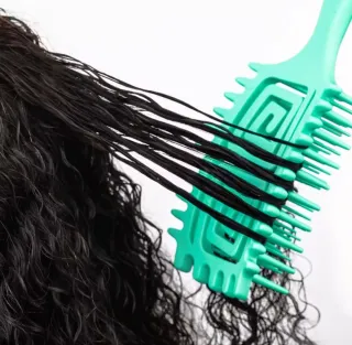 Cepillo diseñado para el método curly, ideal para desenredar el cabello. - Púas flexibles y separadas. - Mango ergonómico para un agarre cómodo. - Es del color de l segunda foto morado