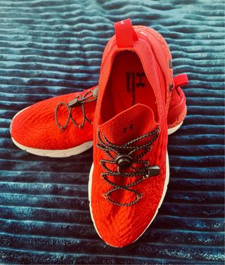 Playeros Under Armour Phantom 2 en color rojo y blanco. Diseñados para ofrecer comodidad y estilo. Originales y con Bluethoot. Muy cómodos. - Parte superior de malla transpirable. - Suela de goma para mayor tracción. - Cierre de cordones con sistema rápido.
