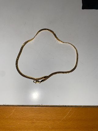 Elegante cadena de acero con acabado en tono dorado. Su diseño es versátil y se adapta a cualquier estilo. - Material: Acero. - Tipo de cierre: Mosquetón.