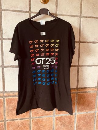 Camiseta negra con diseño OT 25 y logo de Amazon Prime. - Diseño frontal con OT 25 y prime. - Estampado con degradado de colores. - Nueva sin uso