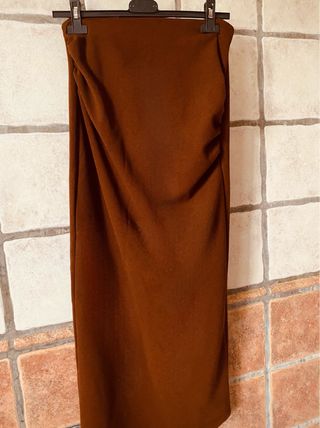 Falda midi de corte tubo, elegante y versátil. - Fruncidos laterales que disimulan abdomen y marca caderas - Cremallera parte trasera con una abertura - Sin cinturilla - Diseño ajustado. - Largo midi.