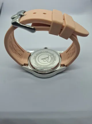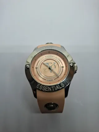 Elegante reloj TOV Essentials con un diseño moderno y atractivo. - Esfera en tono rosa pálido. - Correa de material sintético en color rosa. - Detalles metálicos plateados en la caja y bisel. - Inscripción ESSENTIALS en el bisel.