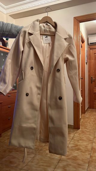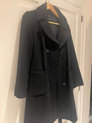 Elegante abrigo de señora de la marca Zara. - Diseño clásico y atemporal. - Doble botonadura. - Bolsillos frontales. - Cuello solapa.