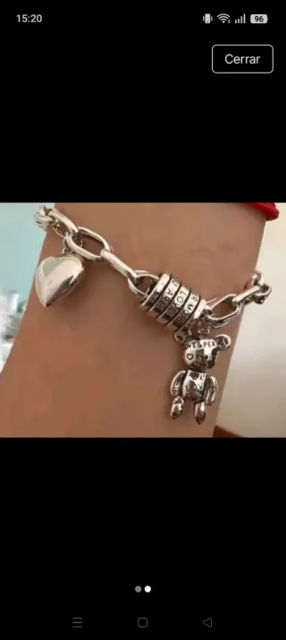 Preciosa pulsera con un diseño encantador. - Charm de osito detallado. - Colgante de corazón brillante. - Cadena de eslabones plateada. - Elemento central con números grabados. Plata de 925