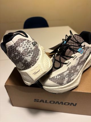Zapatillas de running Salomon AERO GLIDE 4 GRVL. - Diseño en tonos beige y marrón. - Suela con tecnología Opti-Foam. se entrega el tickets de 160€ en Corte Ingles, con posibilidad de cambio por ese importe.