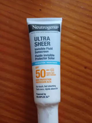 Protector solar Neutrogena Ultra Sheer con SPF 50. - Fluido invisible. - Protección alta. - Textura seca y de rápida absorción. - Con tecnología HELIOPLEX SL®.