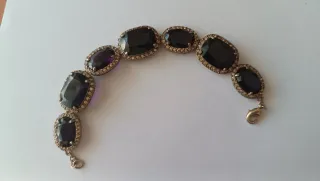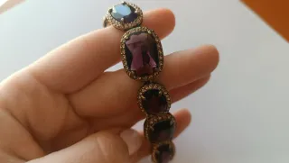Elegante pulsera de la marca Monet con piedras moradas y detalles dorados. - Diseño con varias gemas moradas. - Abalorios pequeños alrededor de las gemas principales.