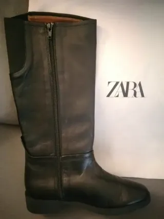 Botas negras hípica de caña alta, cierre de cremallera lateral. Acabada en punta redonda. Forradas en piel. Bolsa de tela incluida para guardarlas. Cualquier posible marca o variación de color son características que confirman la autenticidad de la piel. 📸 La iluminación (solar o artificial) puede hacer que el color varíe ligeramente en las fotos. #zara #zarabotas #zaracalzado #zaramujer #zarashoes #zarasfemme #zaradonna #zarawoman