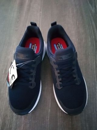 Precio de compra 69.95€. Material exterior: Tela/tejido sintético Material interior: Tela Plantilla: Tela Suela: Fibra sintética Grosor del relleno: Relleno contra el frío Función: Repelente al agua Diseñado con la exclusiva Heel Pillow™, este modelo moderno presenta una parte superior de malla técnica con cordones elásticos y una plantilla con amortiguación Skechers Memory Foam™.