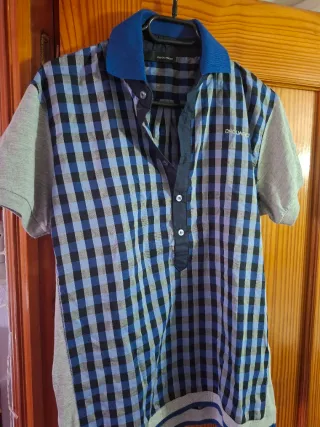 Camisa de manga corta con un diseño a cuadros. - Cuello tipo polo. - Detalle de logo en la parte frontal. - Mangas de color gris.