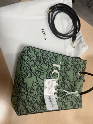 Bolso mini de la marca Tous con un diseño estampado. - Color verde con estampado negro. - Incluye correa. - Viene con su bolsa guardapolvo.