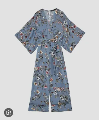 Elegante mono con estampado floral y diseño tipo kimono. - Manga ancha. - Cinturón para ajustar. - Pierna ancha.