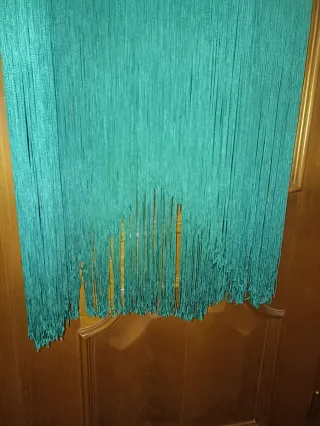 Elegante vestido con un estampado floral y un detalle de flecos en el bajo. - Diseño con mangas abullonadas. - Estampado floral en tonos beige y verde. - Flecos verdes en el bajo.